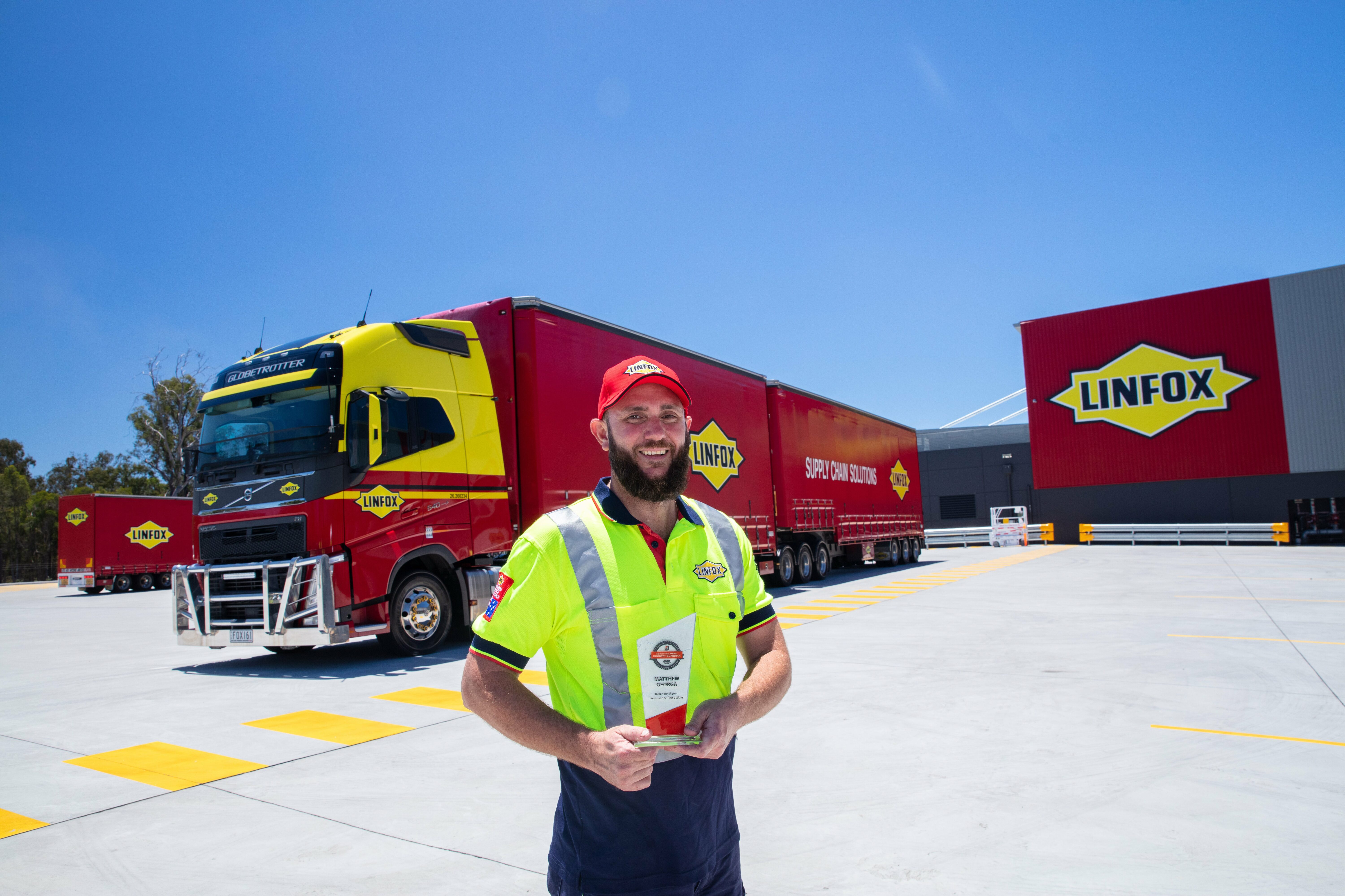 In November, Linfox truck driver Matthew Georga was honoured with the Australian Trucking Association’s prestigious Bridgestone Bandag Highway Guardian Award after his quick-thinking intervention saved the life of a community member.